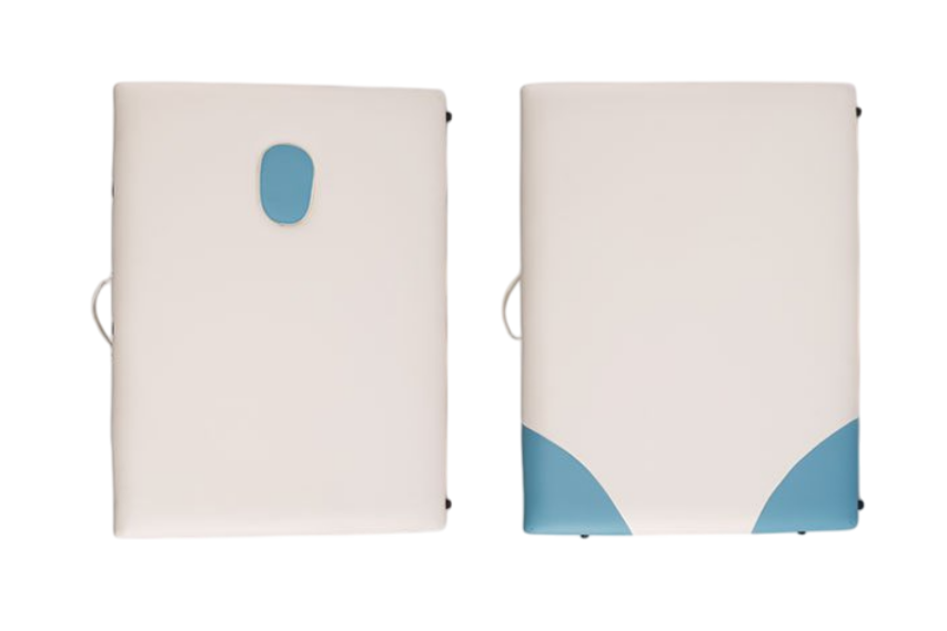 Аксессуары: подголовник, полка для рук, подлокотники, заглушка отверстия для лица в столе, сумка для переноски